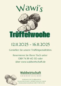 Freuen Sie sich auf eine genussvolle Woche rund um die „Königin der Pilze“. Unsere Küche widmet sich ganz dem feinen Aroma der Trüffel – in kreativen Kombinationen, frisch zubereitet und mit viel Liebe angerichtet.